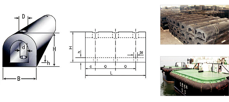 1.反力、吸能量適中 2.底部寬度小,特別適用于框式碼頭 3.重量輕,安裝維護(hù)方便| 型號 | H | B | L | 孔數(shù) | Q | C | h | D | D |